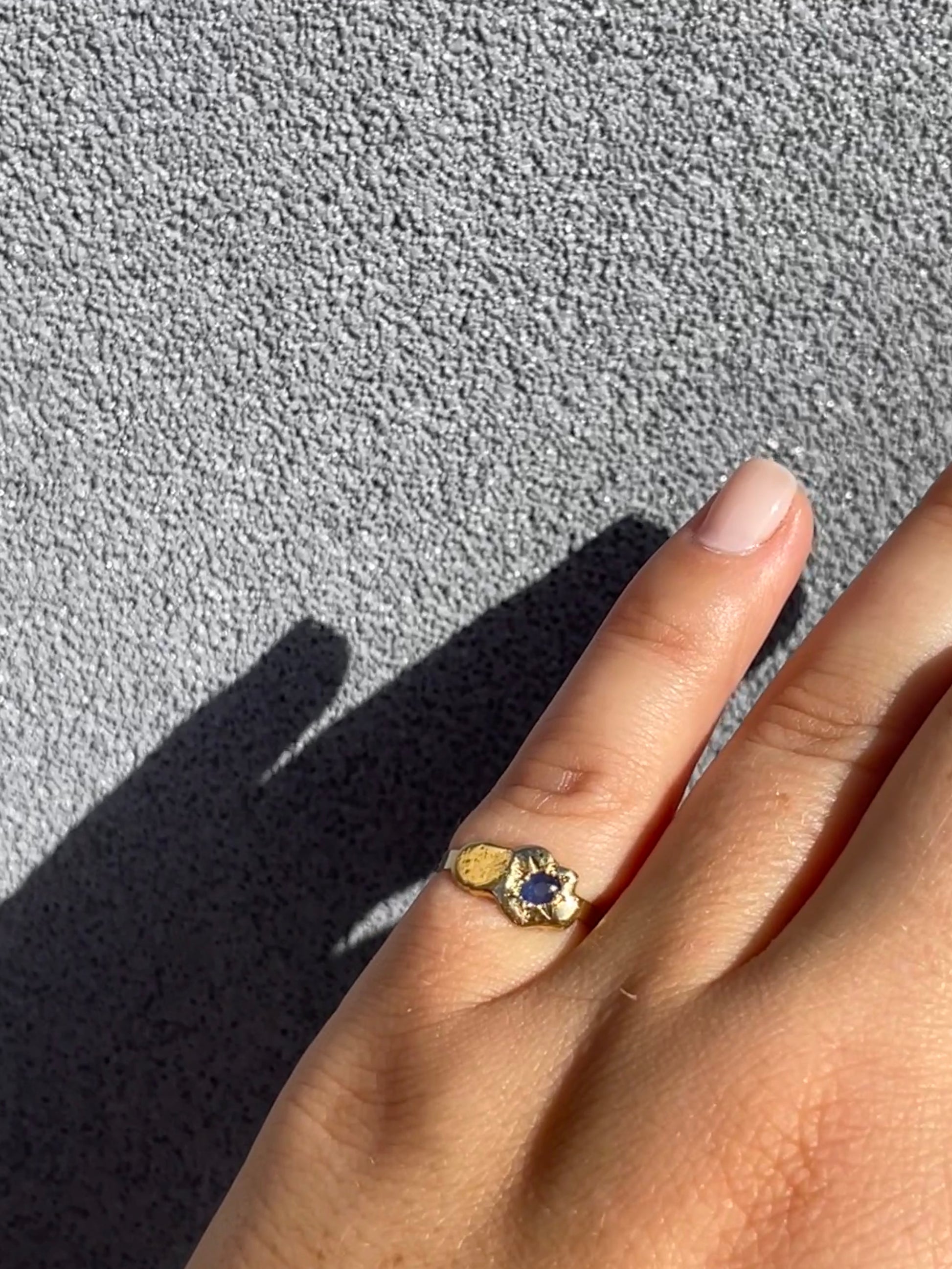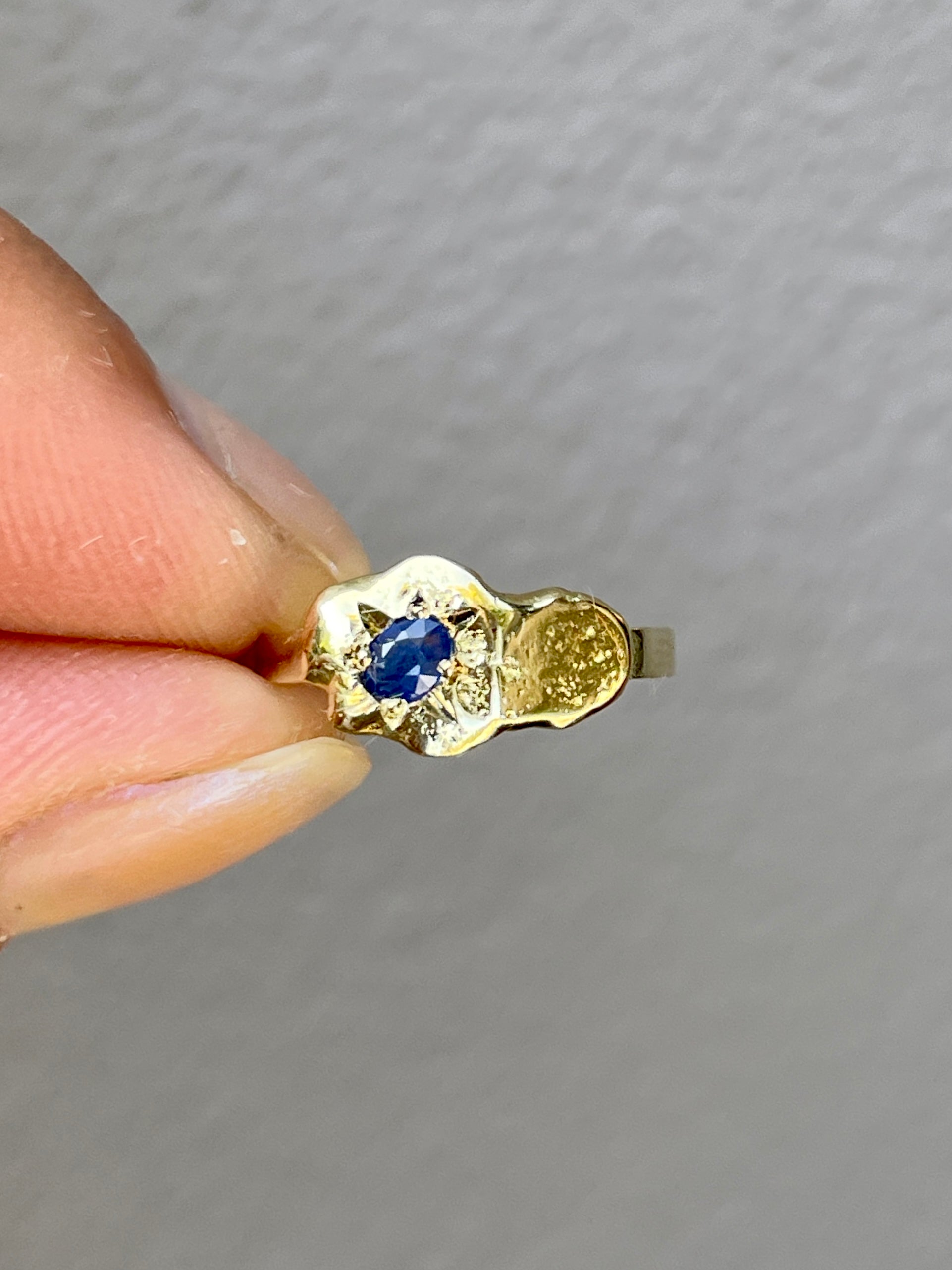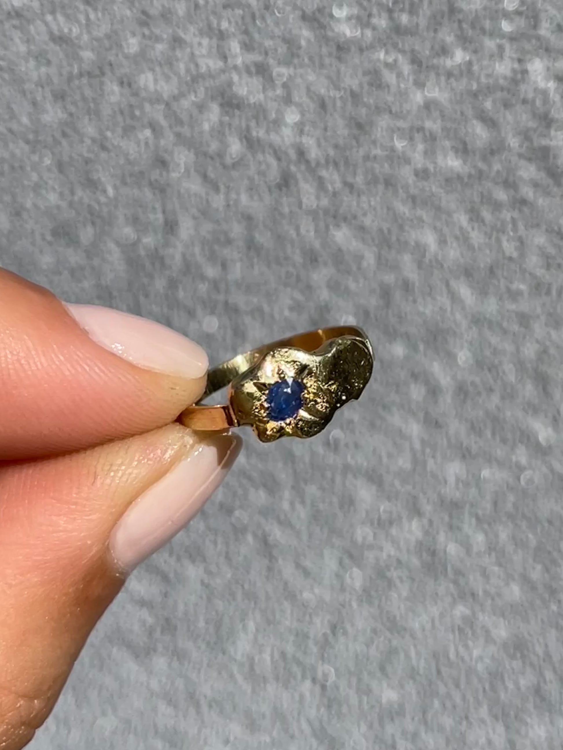 For the eco-friendly nature lover, this handmade Azure Ring crafted with a blue sapphire and recycled gold is the perfect accessory!