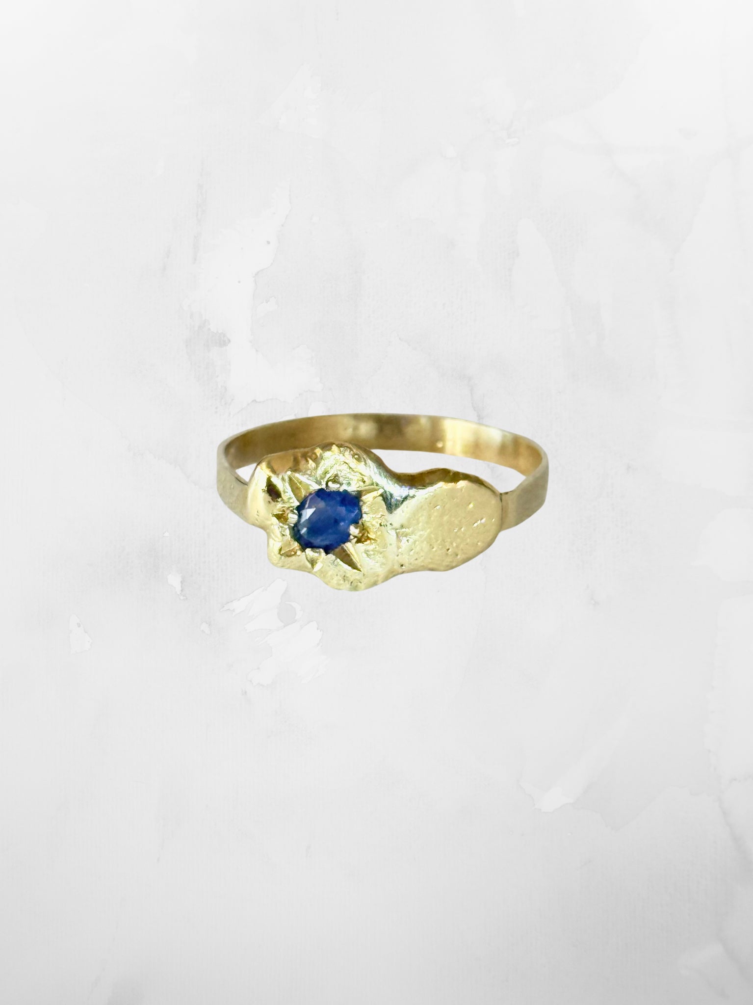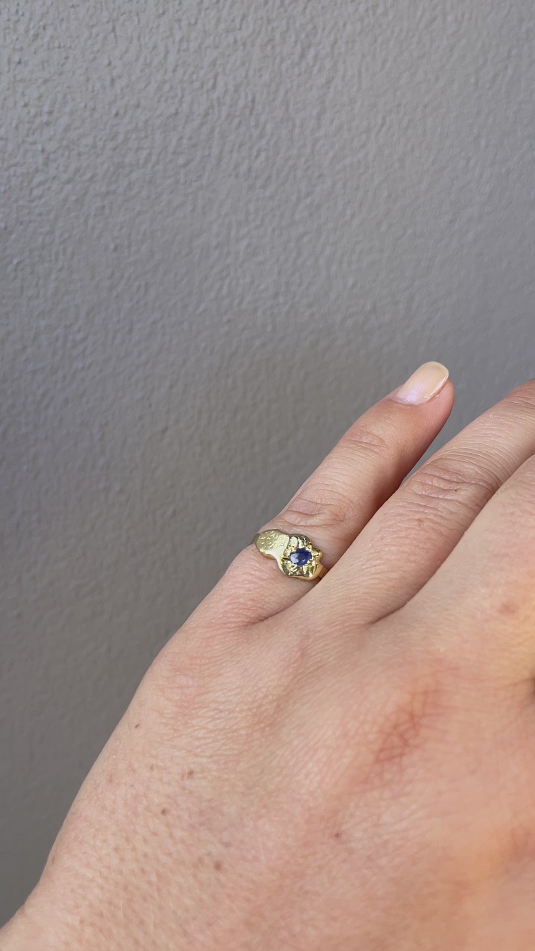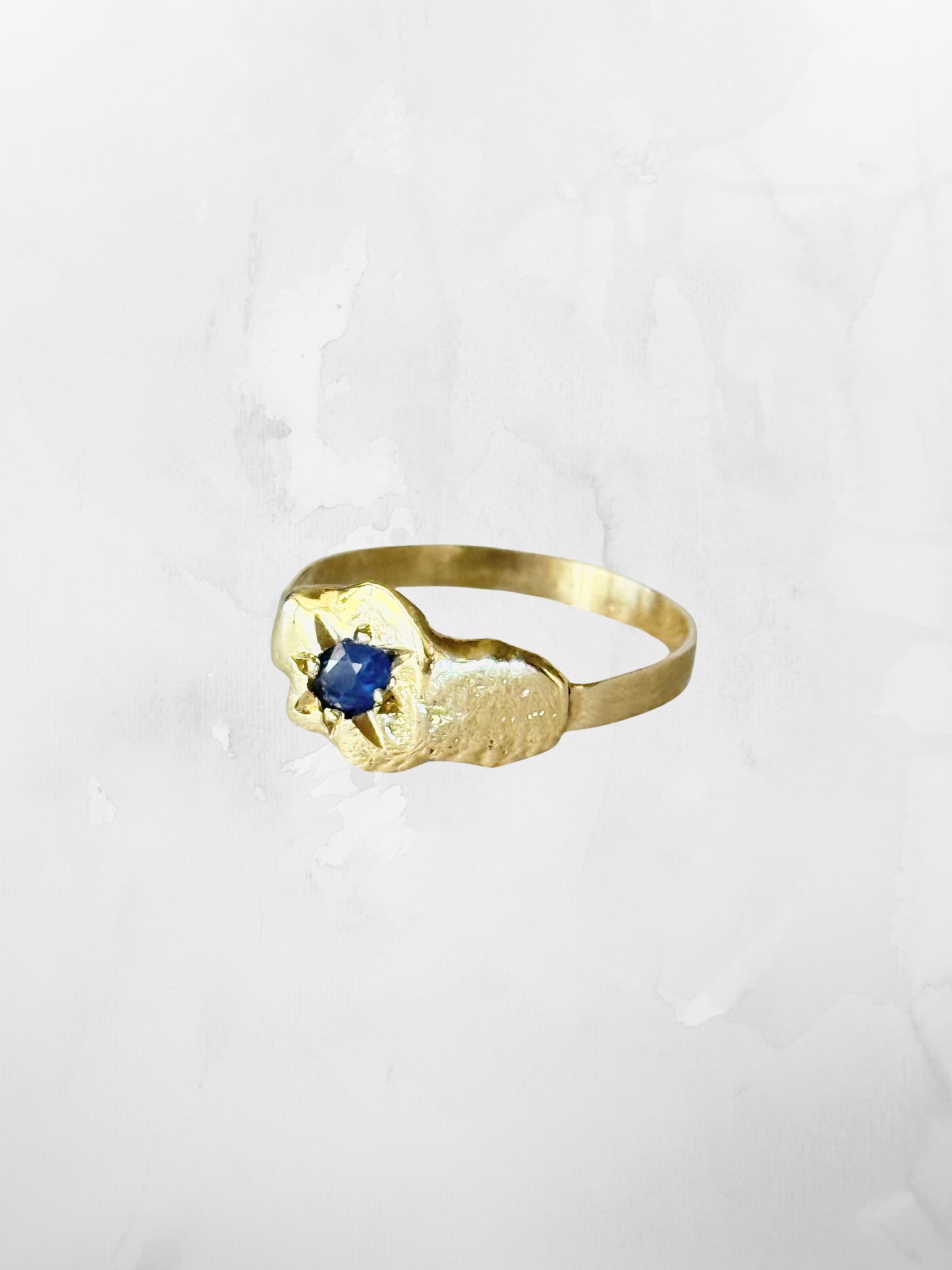For the eco-friendly nature lover, this handmade Azure Ring crafted with a blue sapphire and recycled gold is the perfect accessory!