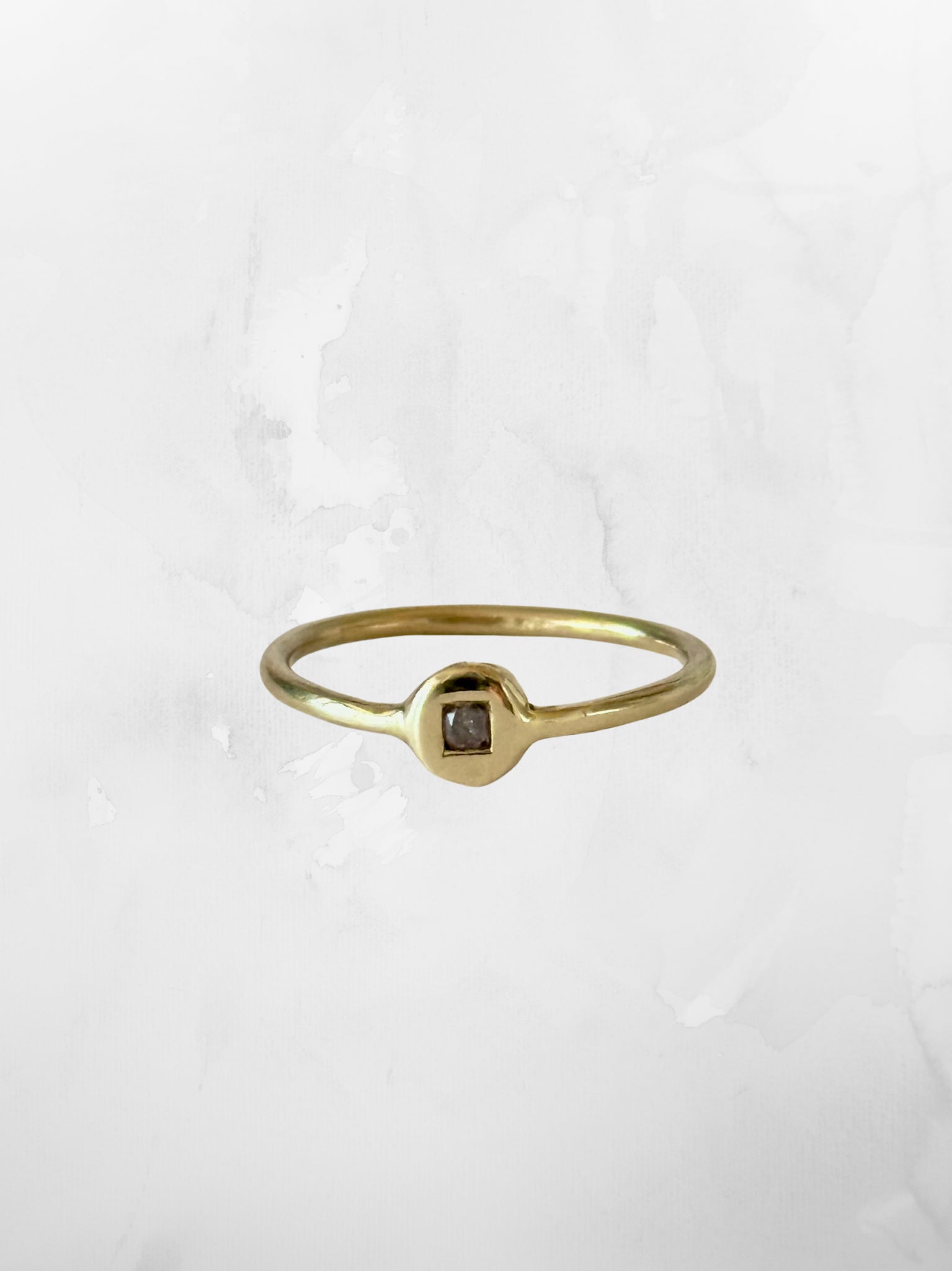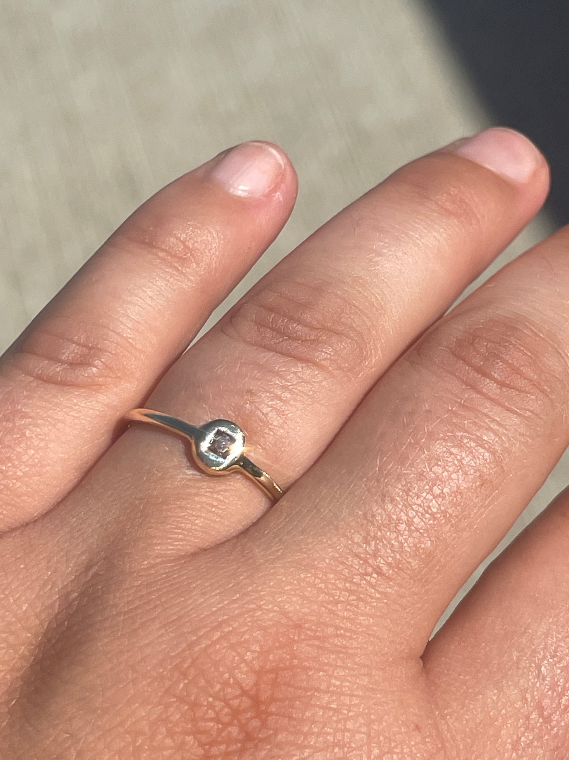 Handcrafted and organic in design, this one-of-a-kind ring features a stunning pink diamond set in solid gold.
