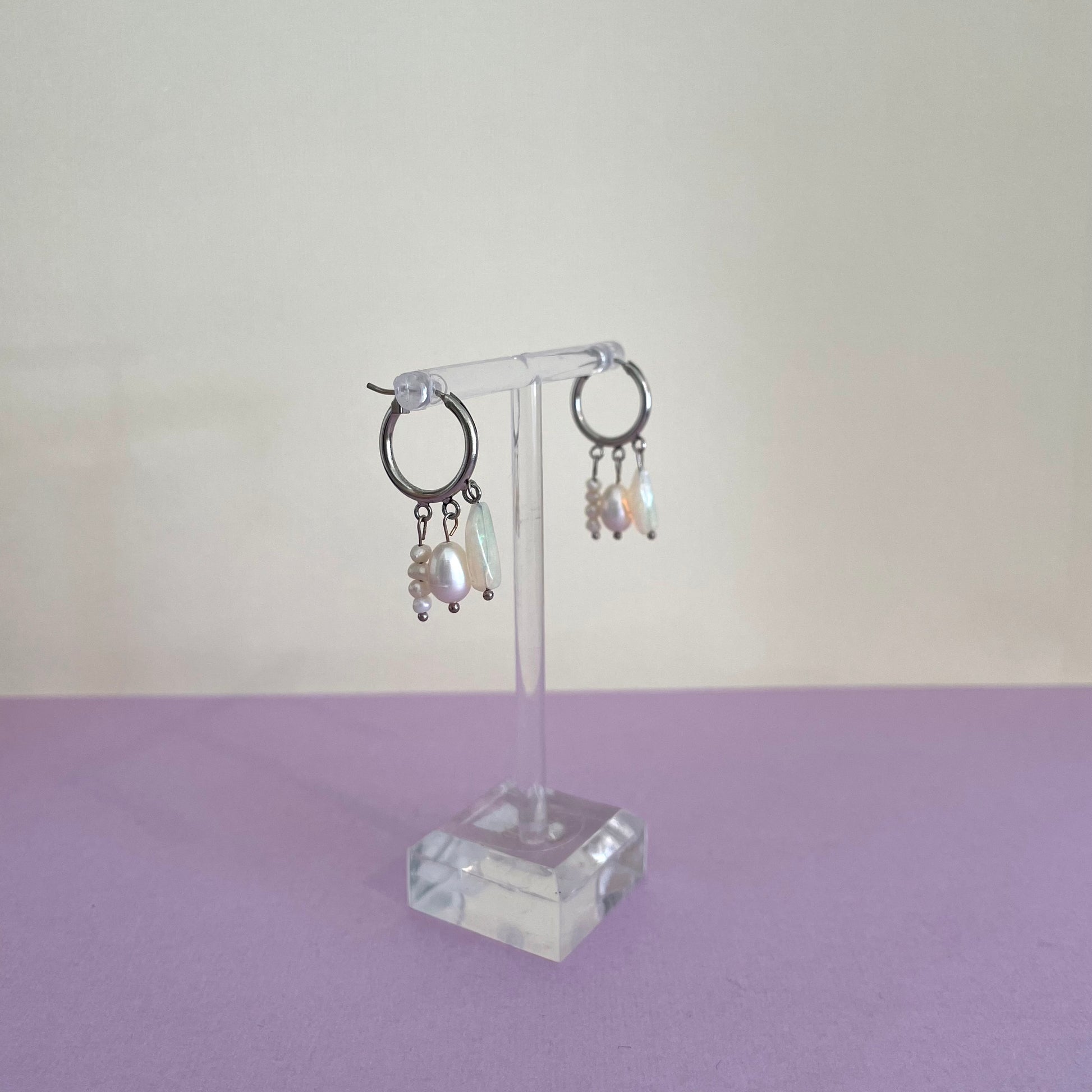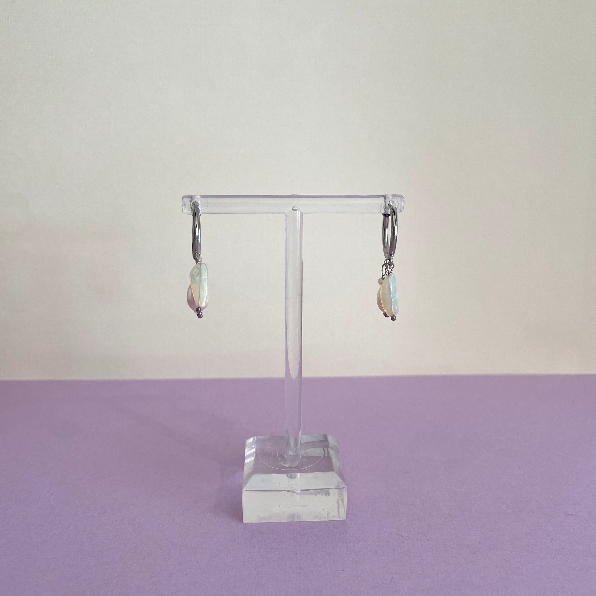 Our opals are paired like sisters from another mister (different shapes, similar weight) making them extremely alluring when the light catches their fire. This paired with gold nugget earring posts and beautiful freshwater pearls makes this a pearlfect combination.