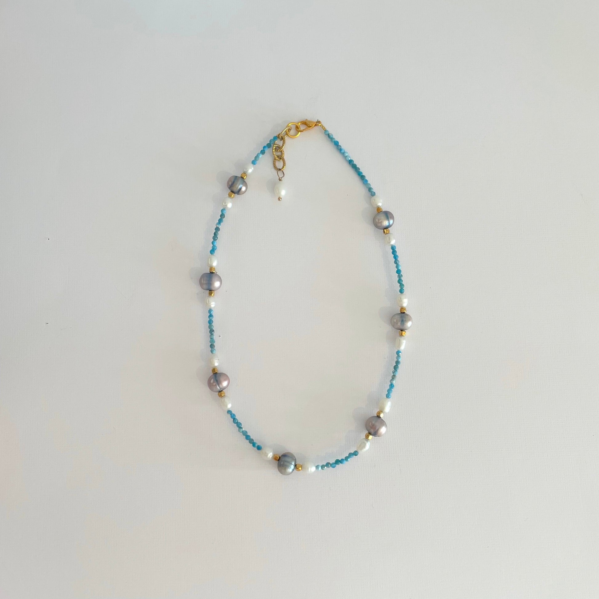 Blue freshwater pearls and Lapis beads.
