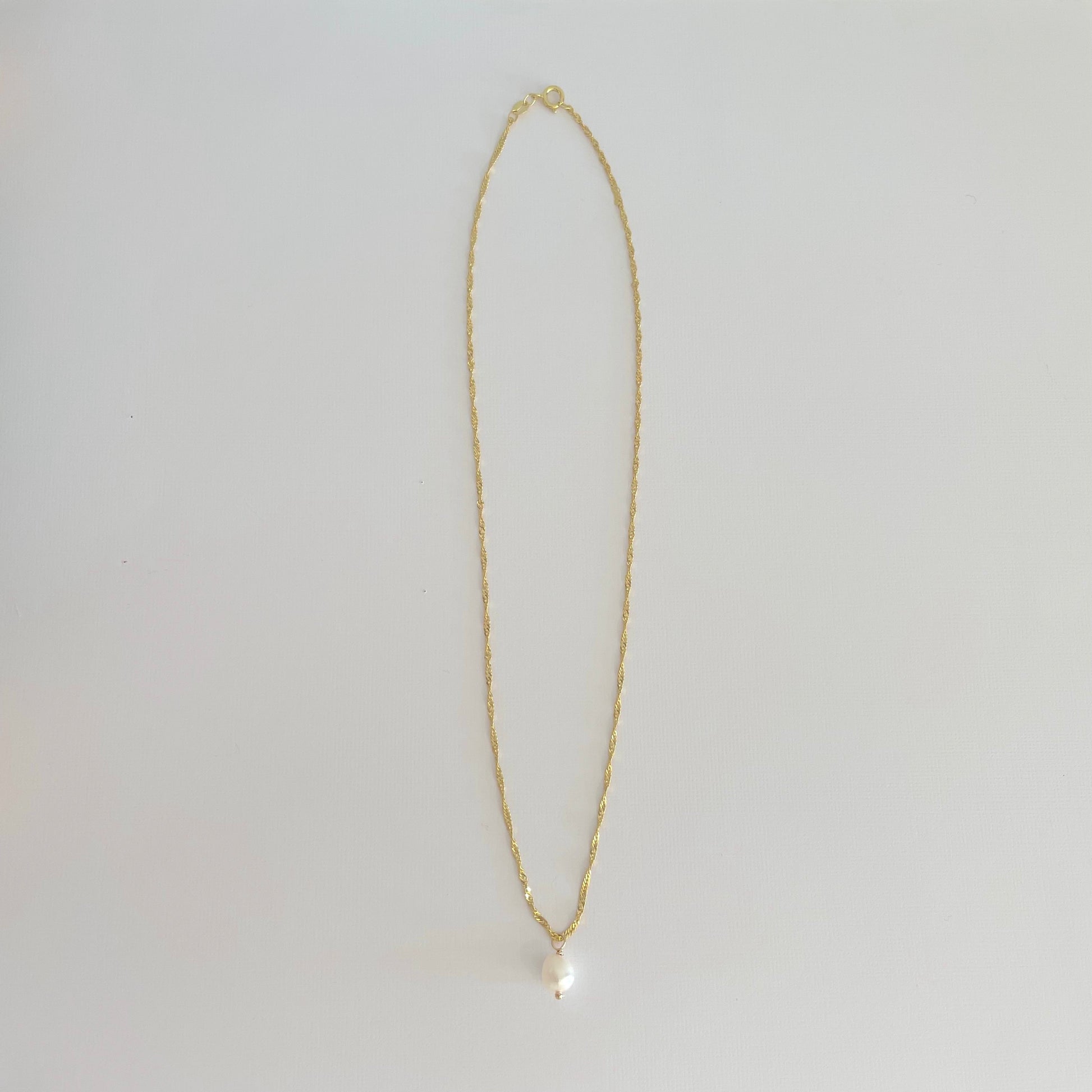 A beautiful Baroque Pearl on a Gold plated Sterling Silver chain.