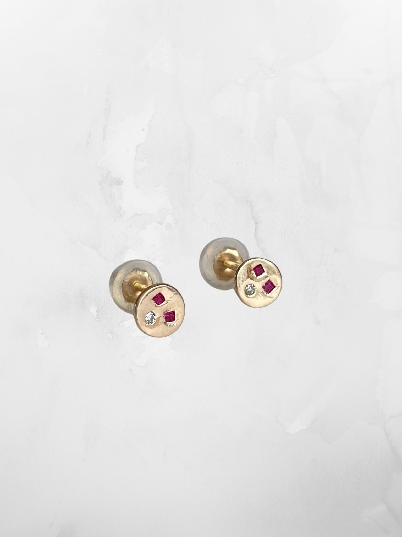 Stones: 4 fuchsia square rubies and 2 white round diamonds
