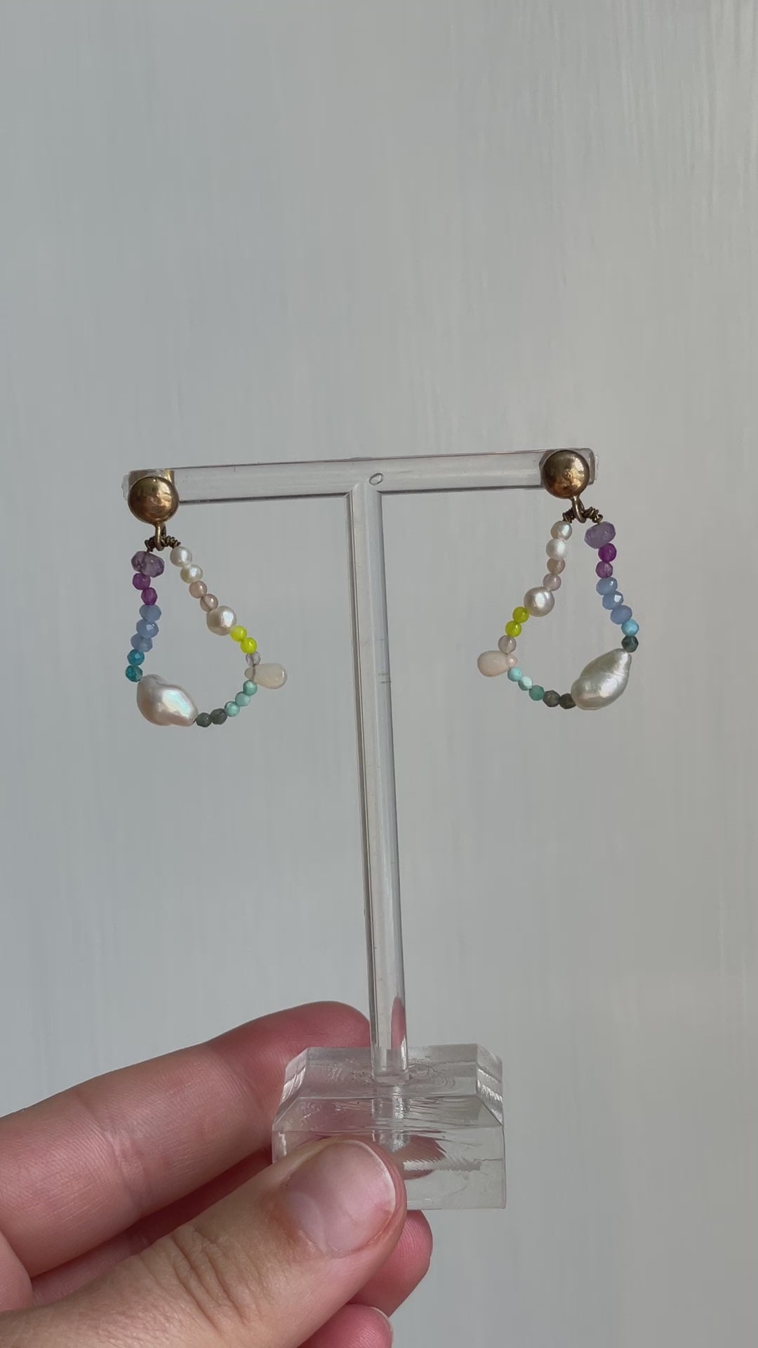 Our opals are paired like sisters from another mister (different shapes, similar weight) making them extremely alluring when the light catches their fire. This paired with gold nugget earring posts and beautiful freshwater pearls makes this a pearlfect combination.