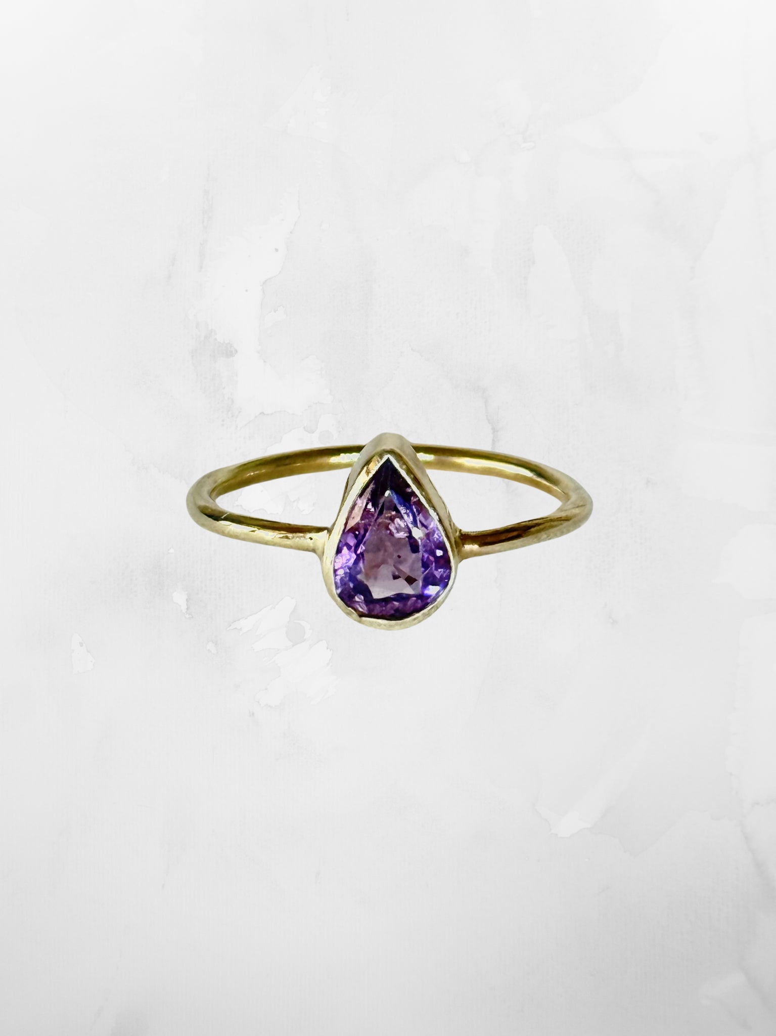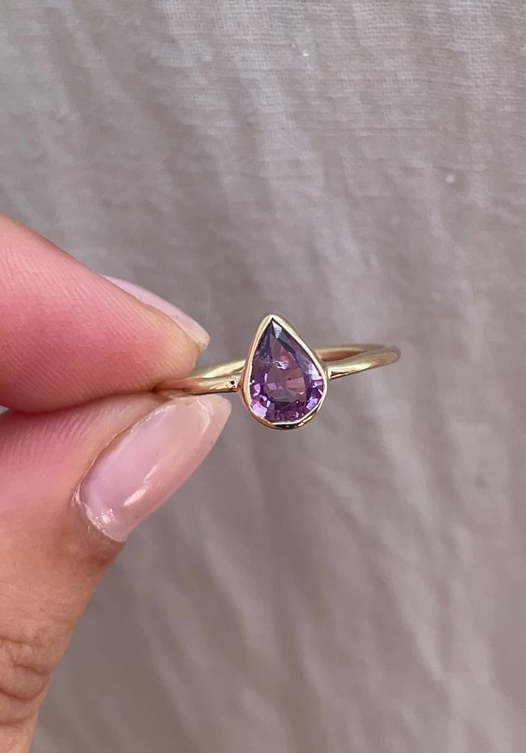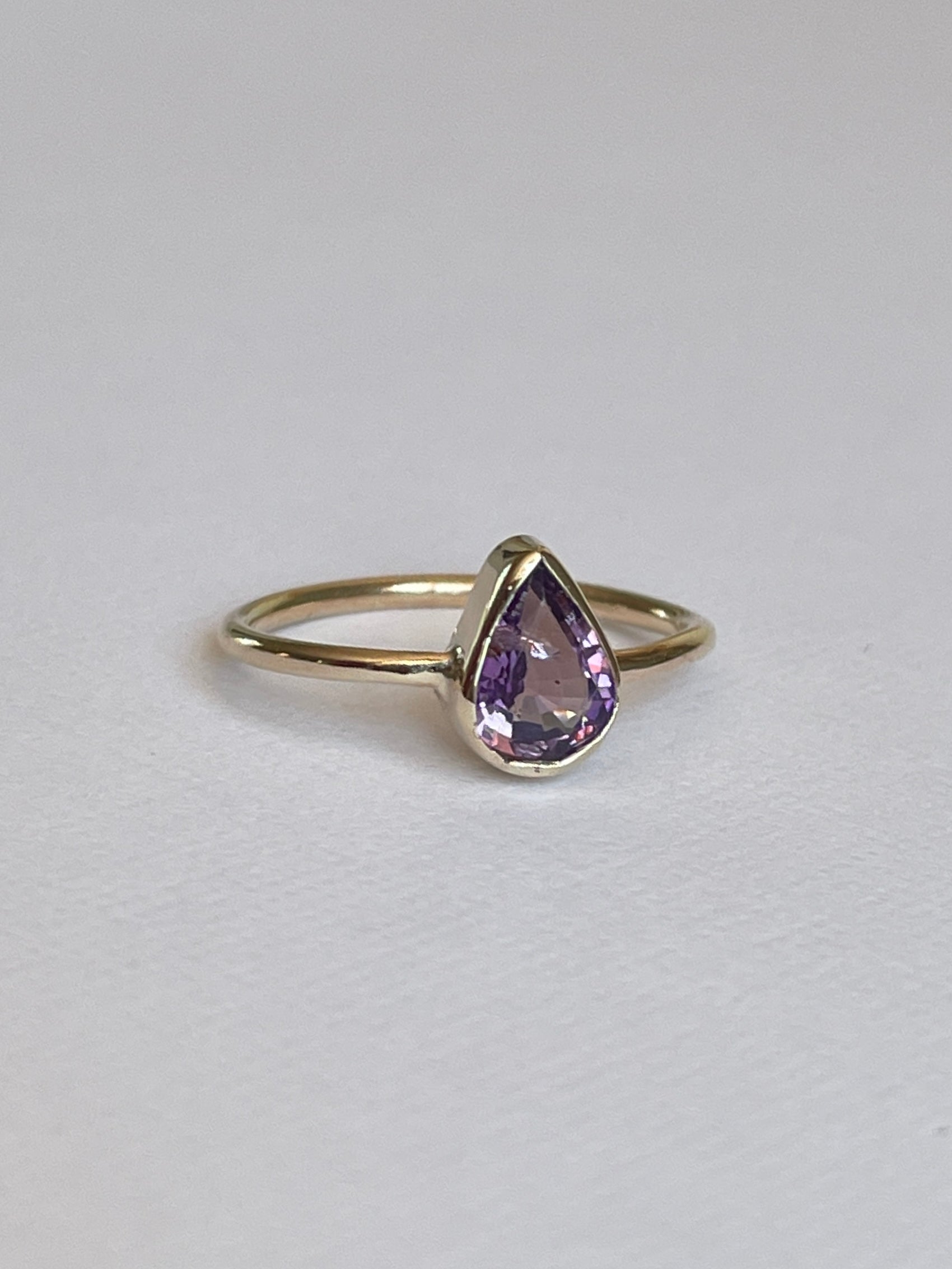 Stone: 1.2ct pink/purple pear sapphire | Tanzanian origin | Included