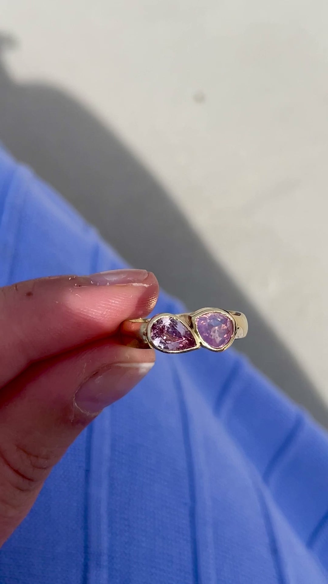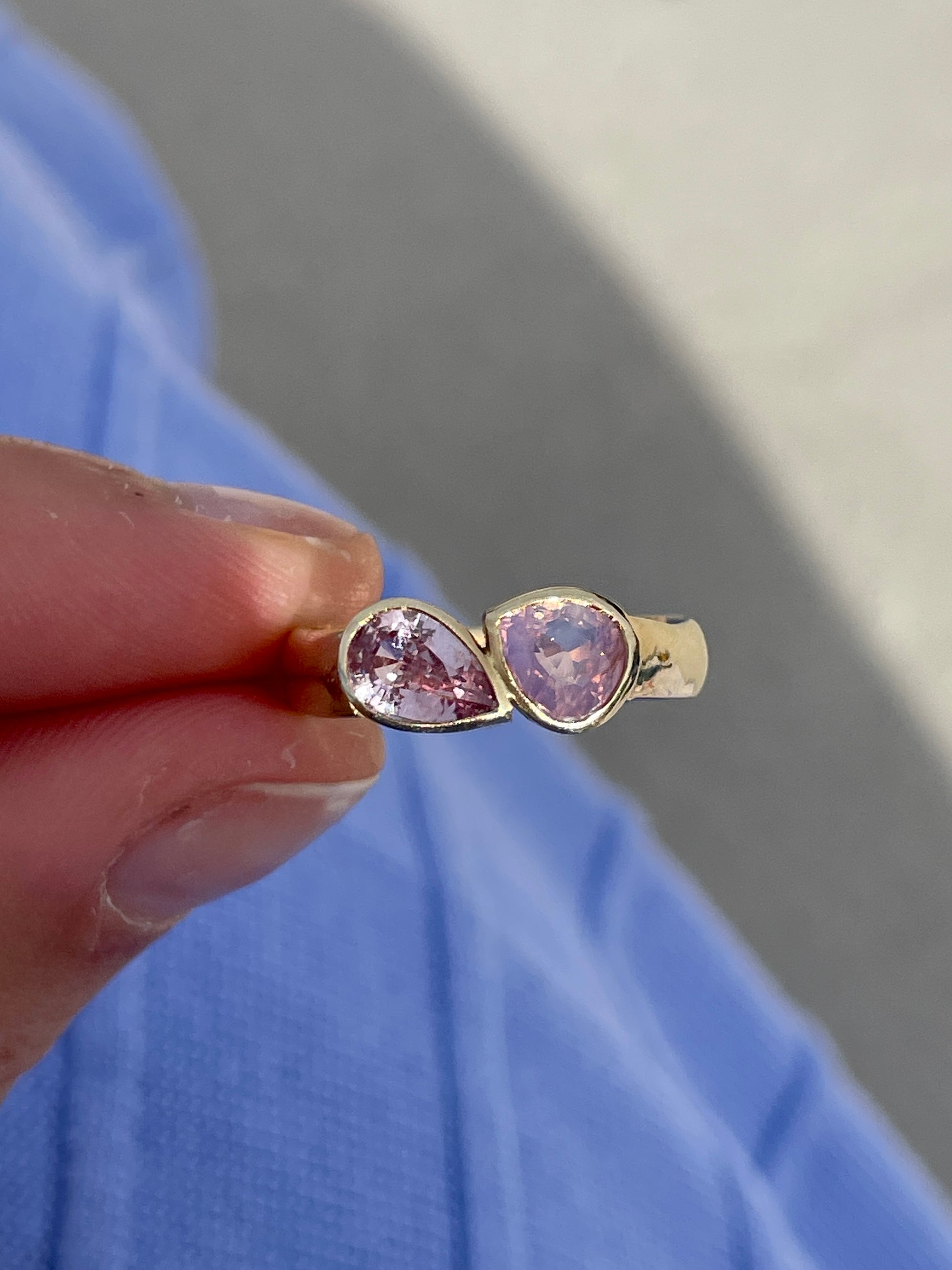 Left Stone: 1.015ct pastel pear sapphire | Vietnam origin | slightly included